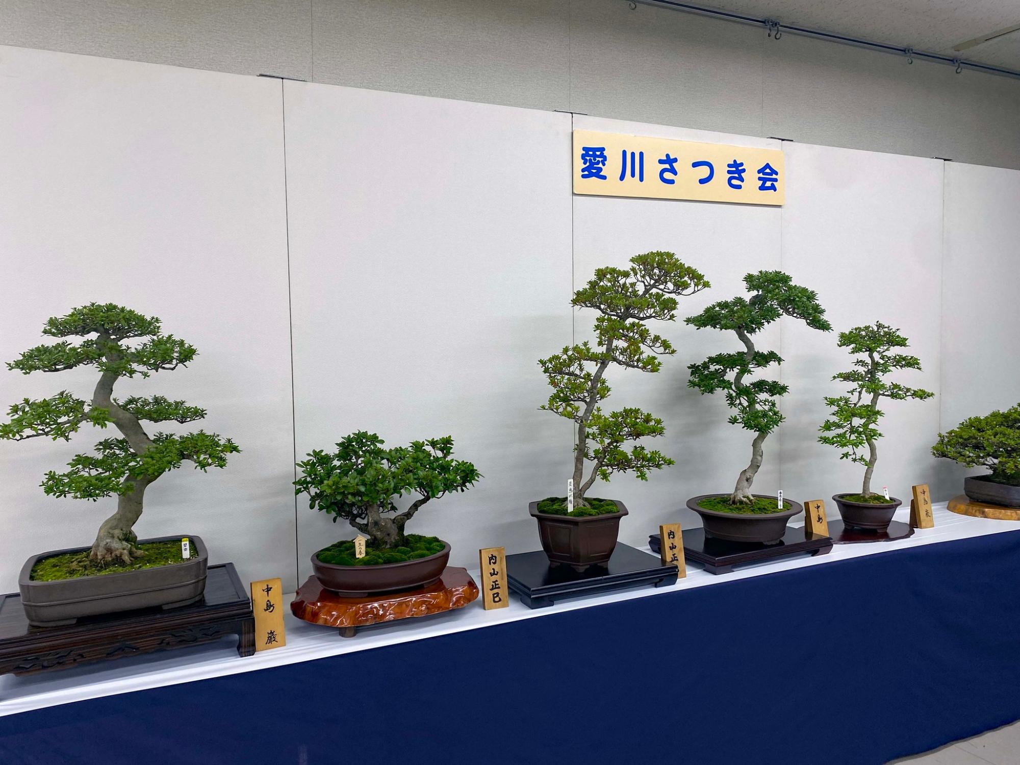 春には美しい花を咲かせる「さつき」。会員が丹精を込めて育てます。文化展では素敵な盆栽を展示しました。