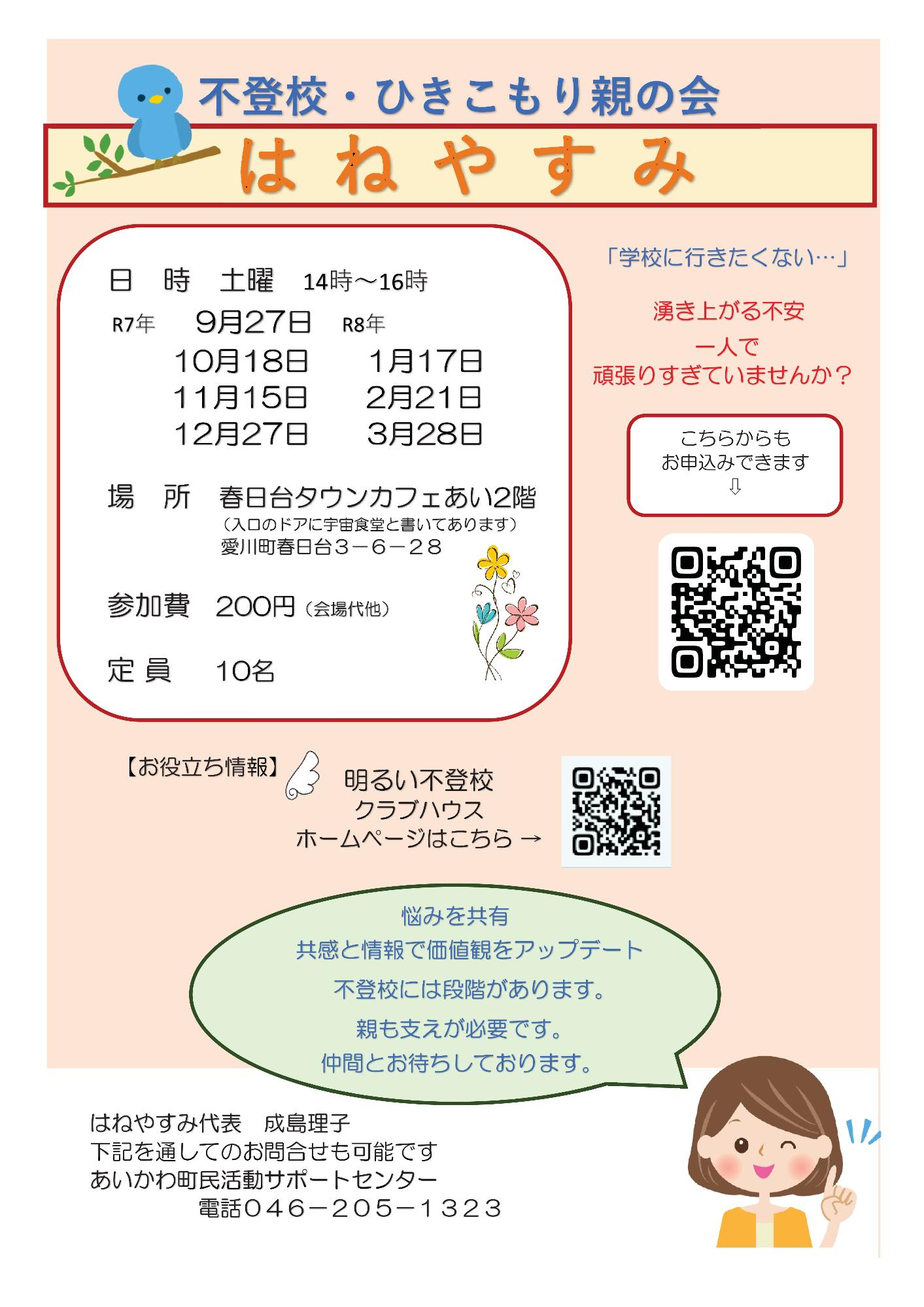 不登校・ひきこもり親の会 はねやすみ