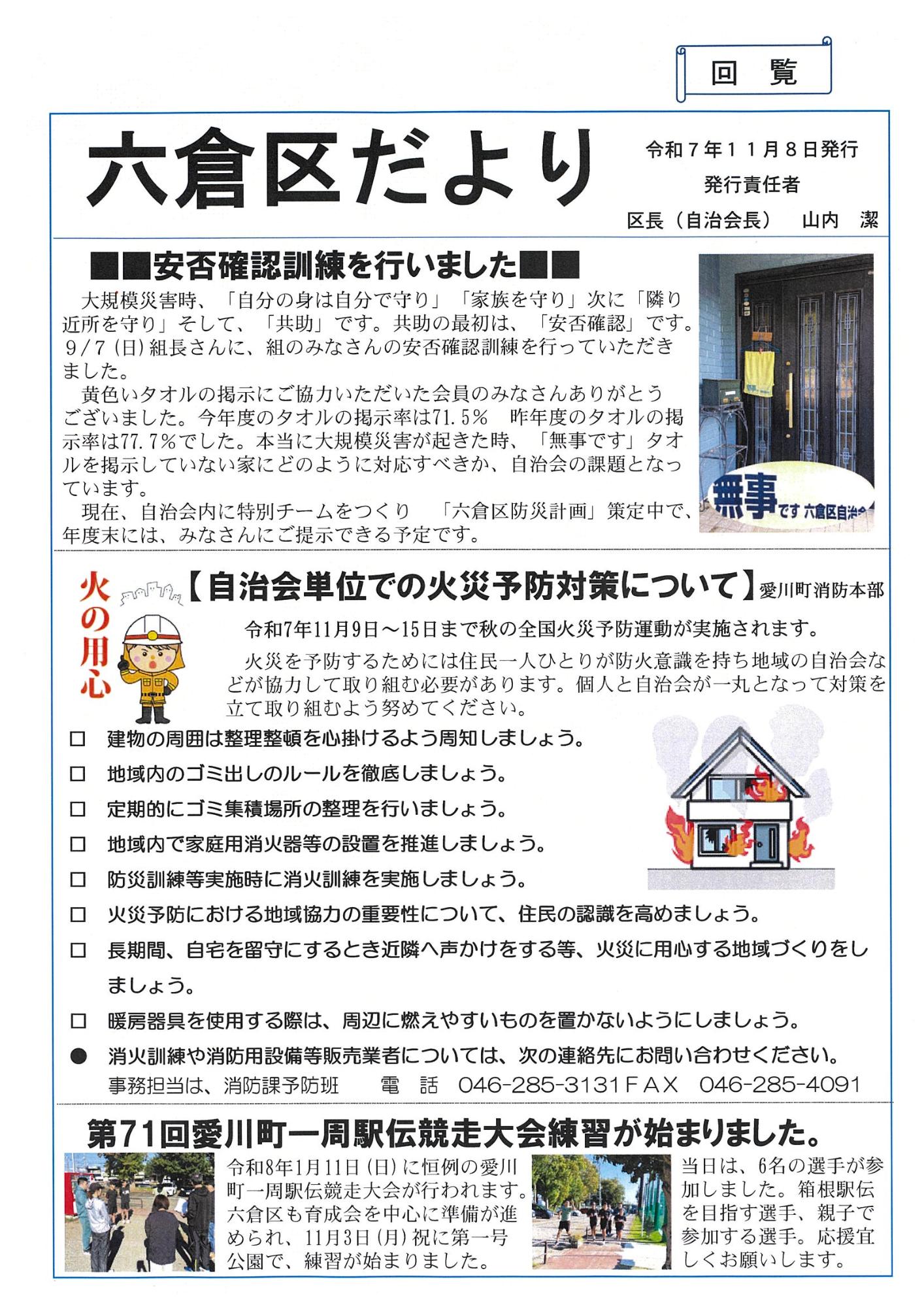 六倉区だより 令和7年11月8日 (PDFファイル: 1.4MB)