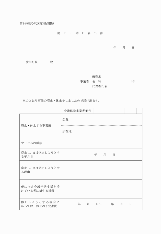 2 法第115条の25第2項の規定による届出は、廃止・休止届出書(第3号様式の2)により行うものとする。