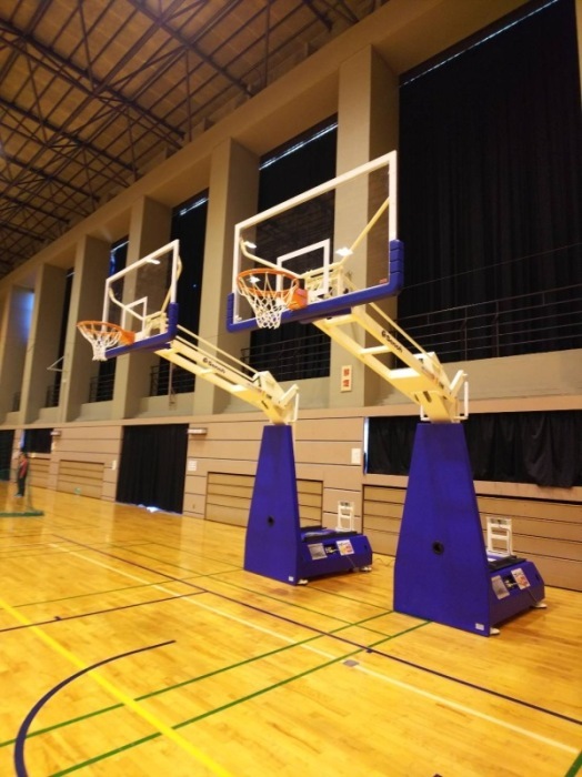 第1号公園体育館の移動式バスケットゴール台を更新しました(令和3年度)