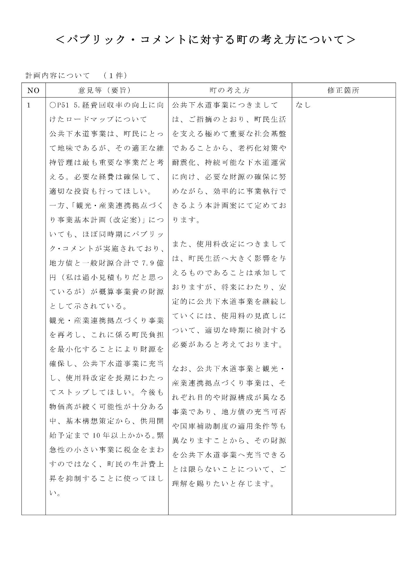 パブリックコメントを踏まえた計画