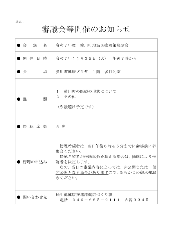 専門的知識を有する方の意見を聴く懇話会であることから、公募はしません。