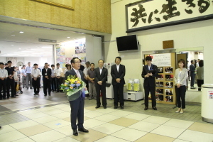 左から同組合 山本常務理事、柴崎理事長、小野澤町長、吉川副町長