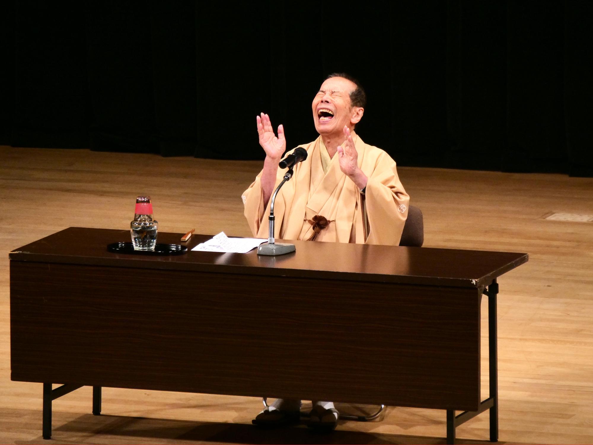 講演では、火災原因で多い事例や消火器での初期消火の実演など、住宅火災における防火対策について町消防課職員からご説明し、アトラクションでは、落語家の林家木久扇さんに「人生は 落語だ」と題してお話をしていただき、ユーモアに溢れたお話や、「笑っていれば、きっと良いことがありますよ」とのメッセージに、会場は大いに盛り上がりました。