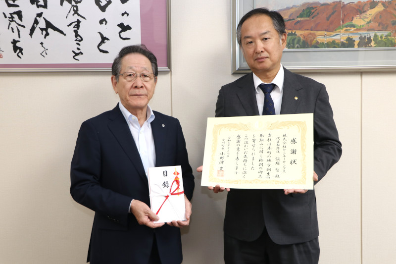今回のご厚志に改めて心から感謝を申し上げますとともに、いただいた寄付金は、70周年記念事業を通して、将来のまちづくりにつながるよう有効に活用してまいります。