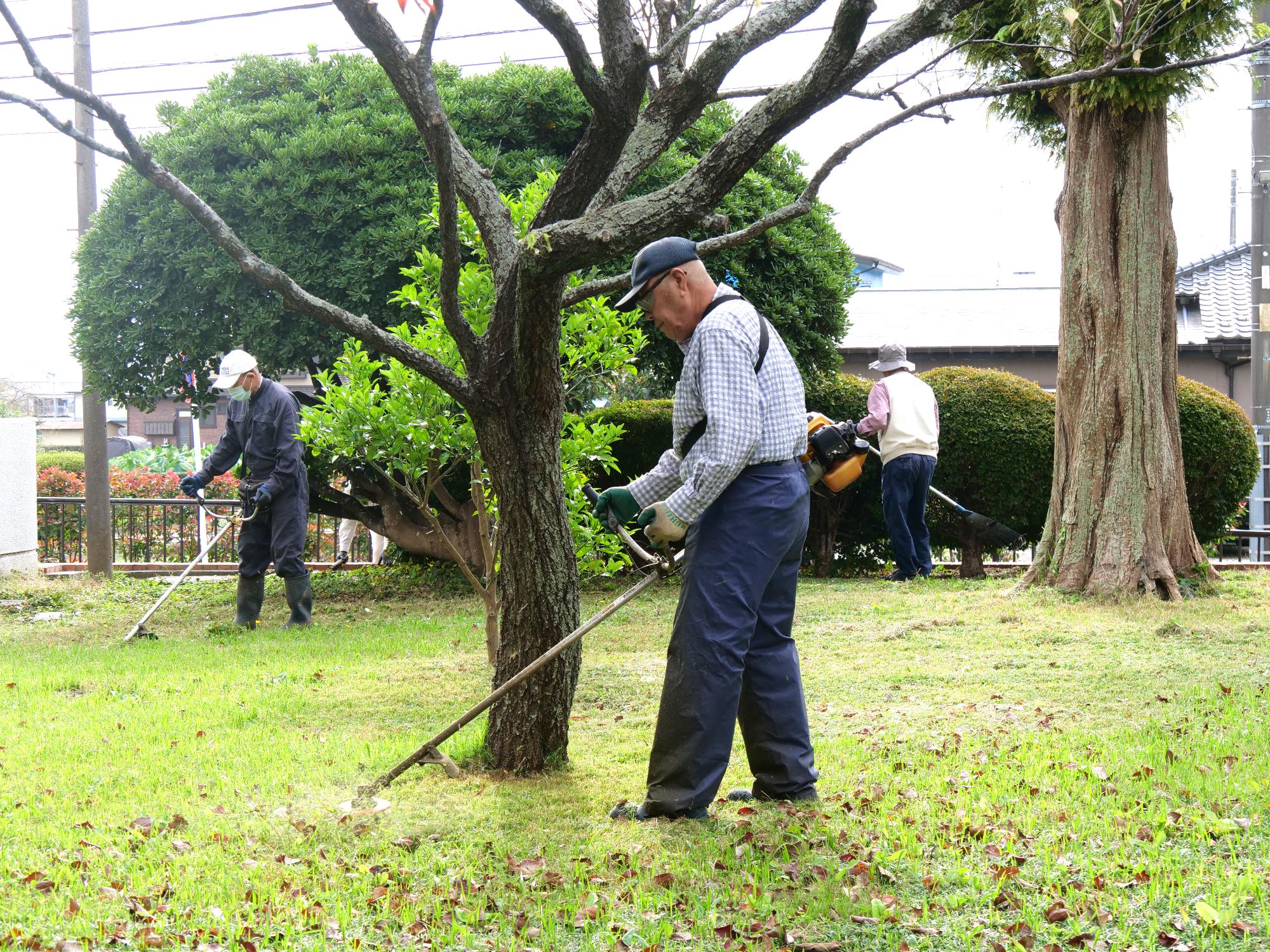 10月26日(日曜日)に開催予定の「ふるさとまつり」に向け、箕輪高嶺会(瀧本勝正会長)の皆さんに、役場周辺の除草作業を行っていただきました。