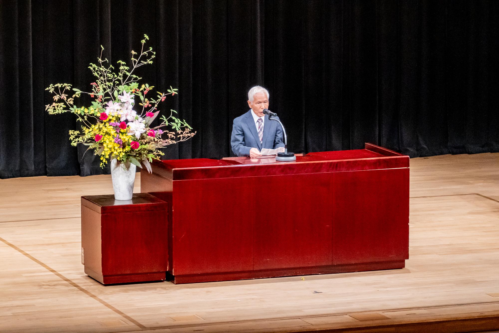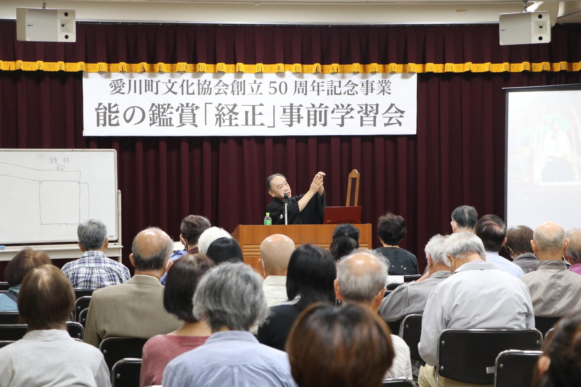文化協会創立50周年記念事業「能の鑑賞 経正」を開催しました!10月25日(土曜日)愛川町文化会館にて、文化協会創立50周年記念式典と講演会の「能の鑑賞 経正」を開催しました。 当日は450名が文化会館ホールに訪れ、能楽を堪能していました。 当日は13時30分から記念式典、14時10分から講演会・ワークショップ、15時30分から能公演「経正」というタイムスケジュールで進行していきました。 記念式典、講演会・ワークショップ、能公演とそれぞれの様子を下記にて詳しく掲載します。 記念式典の様子