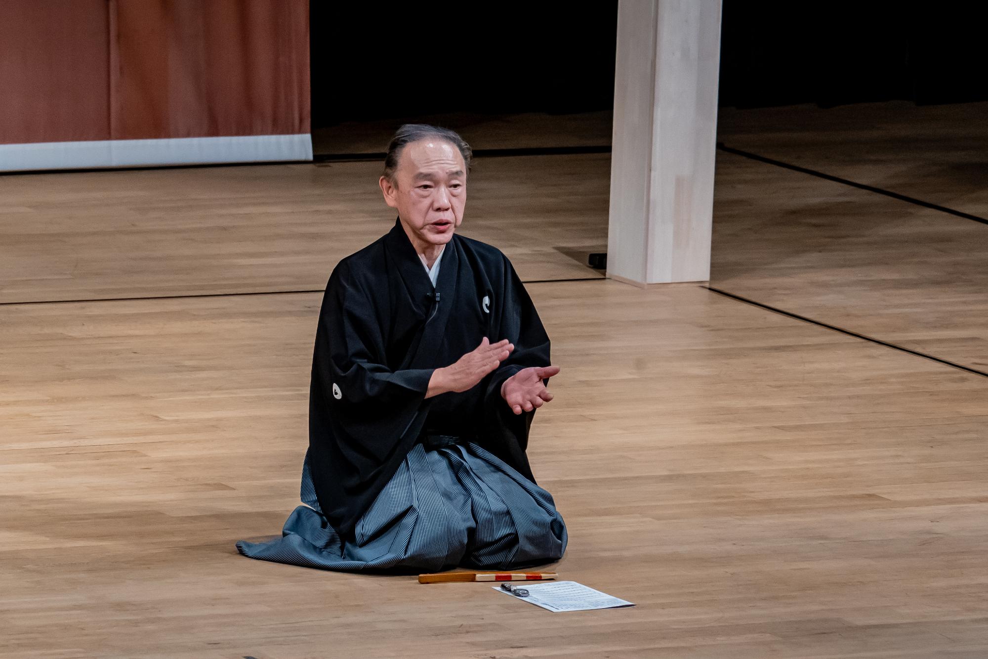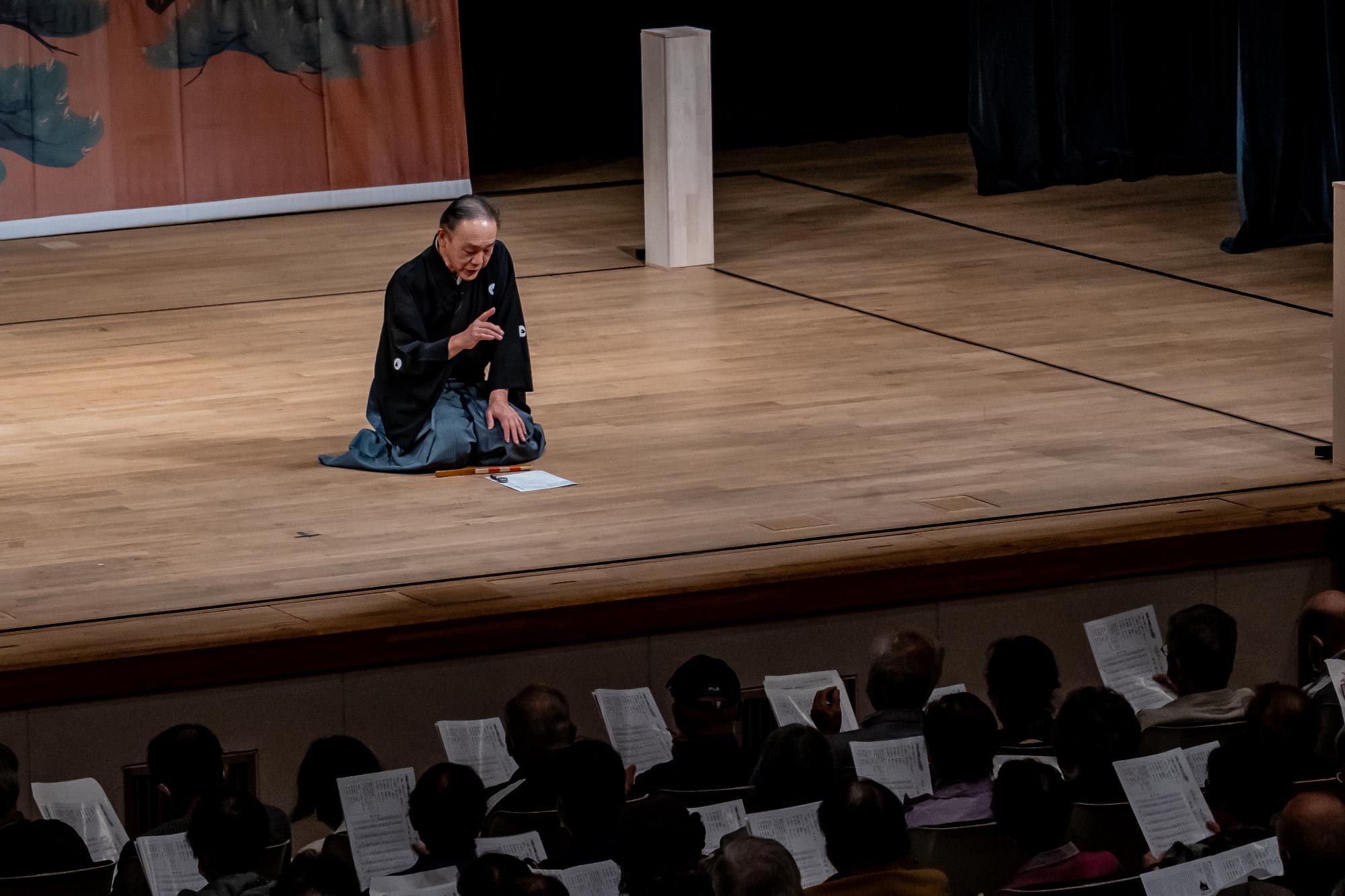 加藤 眞悟先生による「ワークショップ「高砂」を謡ってみよう」では、観客が加藤先生の声に合わせて謡っていました。加藤先生からは「皆さん上手ですね」とのお褒めの言葉をいただく場面もありました。